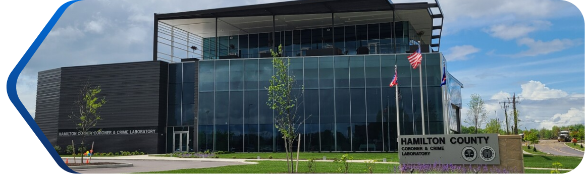 The Hamilton County Coroner’s Crime Laboratory (HCCL) is located in Blue Ash, Ohio and occupies a three-story building that was built in 2021. The mission of the Crime Laboratory is to provide reliable, accurate, timely, and impartial forensic services to the local and regional criminal justice community. The Crime Laboratory has an additional responsibility to assist forensic pathologists with determining cause and manner of death.